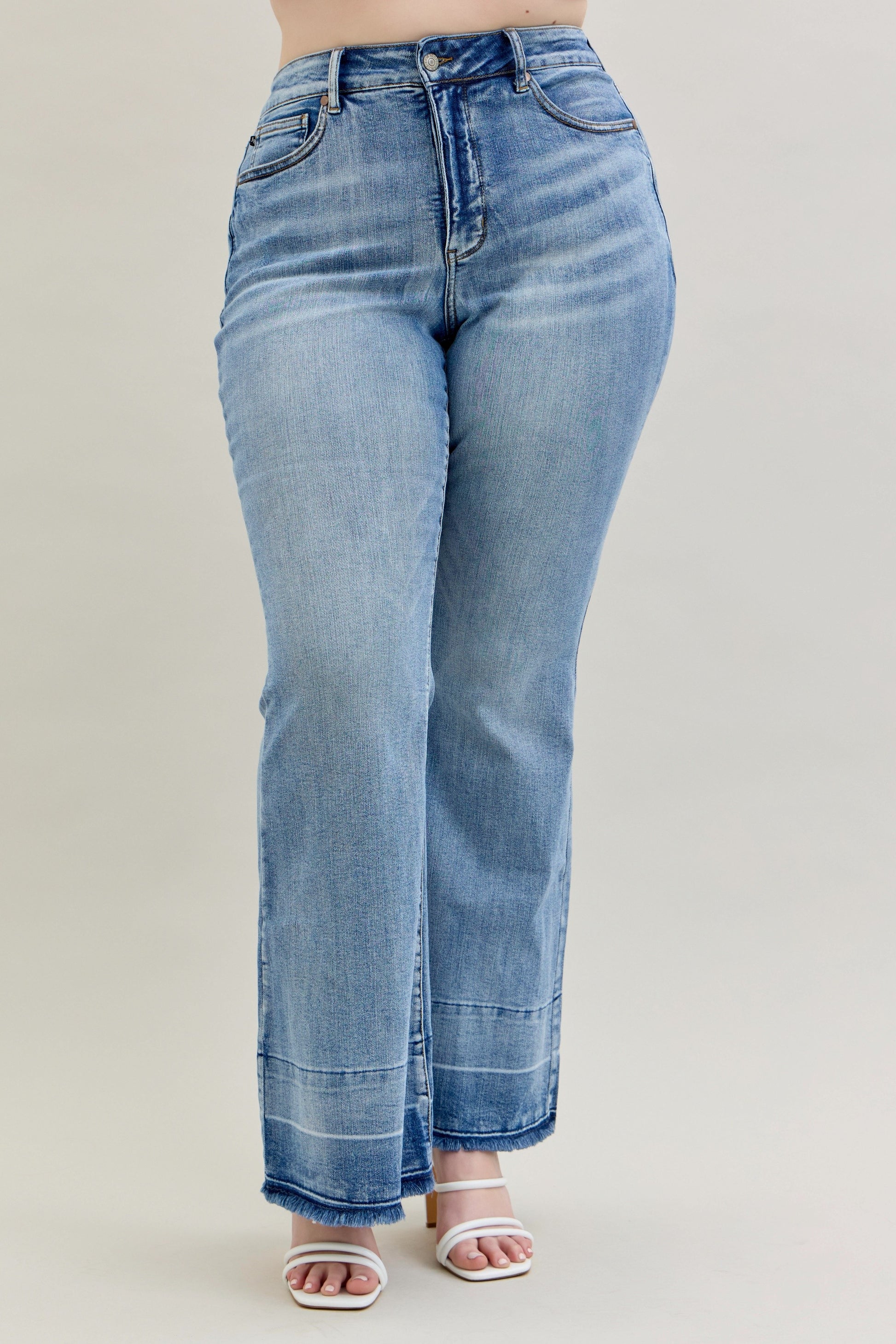 HW "TUMMY CONTROL" WITH RELEASE HEM FLARE 91% Cotton / 7% Poly / 2% Spandex FRONT RISE:12 1/4' INSEAM:33 1/2'